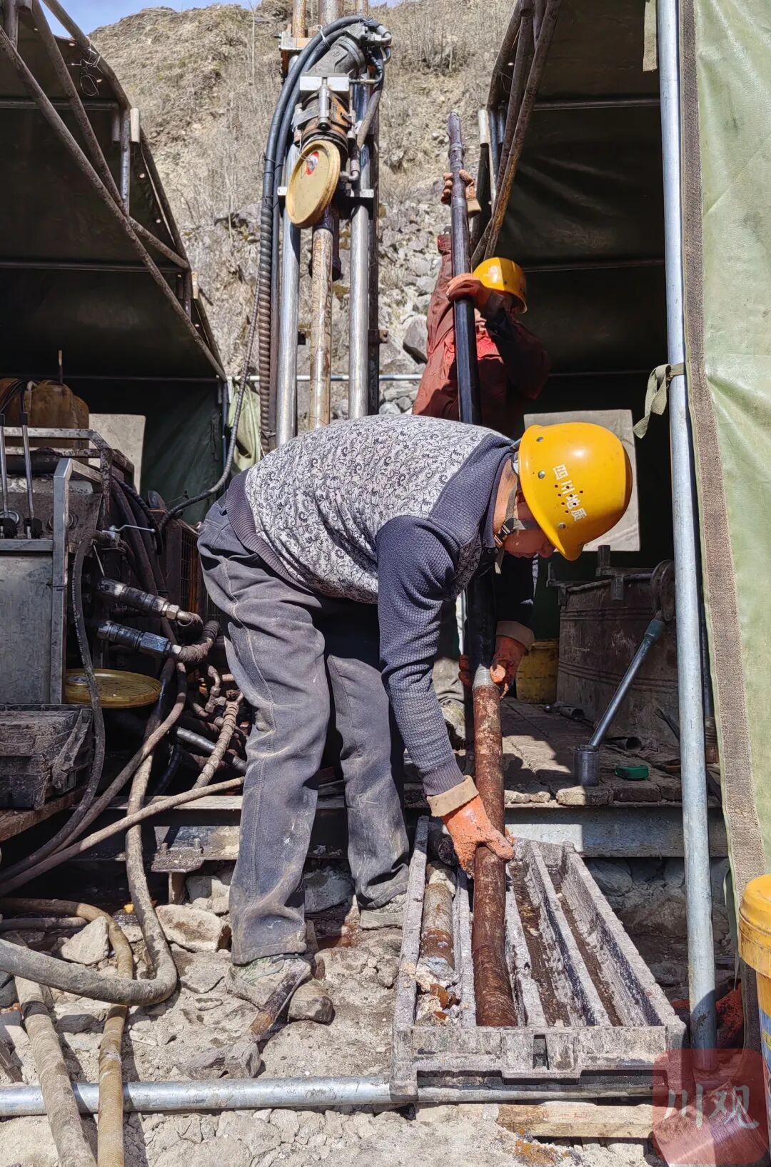 2023年底,海拔2800米之上的矿区,一台台高大钻机耸立,长长的钻杆穿越层层地层,向着千米深部持续延伸,一节节取出带着地层余温的岩芯,表面隐约闪烁着矿物特有的光泽。这些岩芯取样是判断资源储量与品位的重要依据。