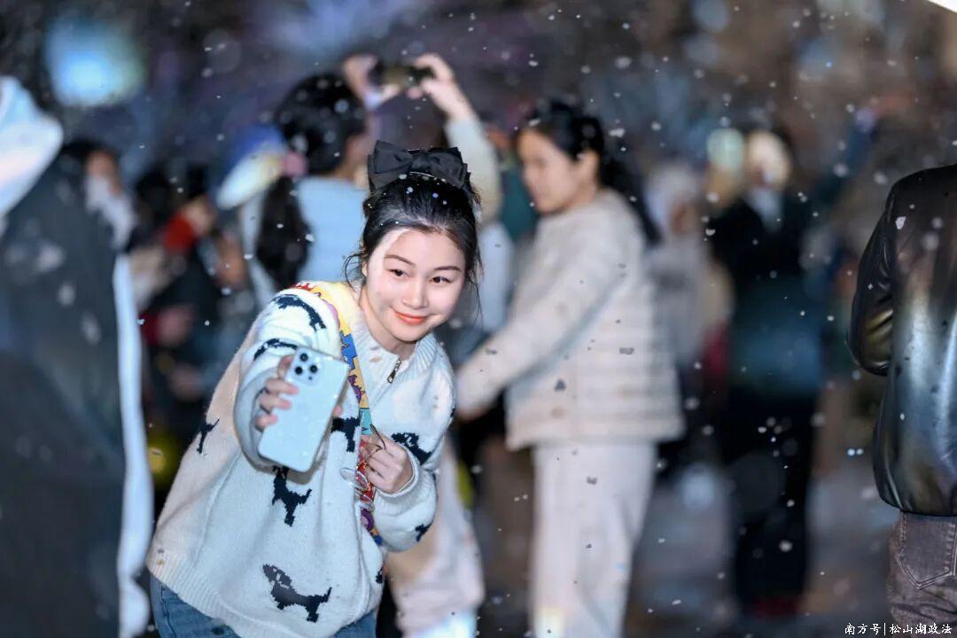 12月27日,悠兰里一周年生日派对正式开启。活动包含亮灯飘雪仪式、生日音乐会、雪精灵巡游及毛线编织公共艺术四大环节。当晚,全长350米的星光长廊与园区灯光系统依次亮起,营造出层层递进的沉浸式许愿氛围。配合整点人工降雪,吸引大量观众驻足许愿与拍照。