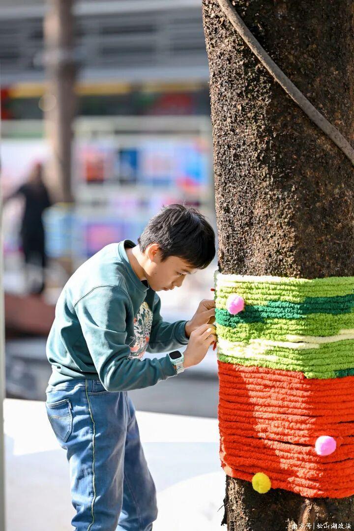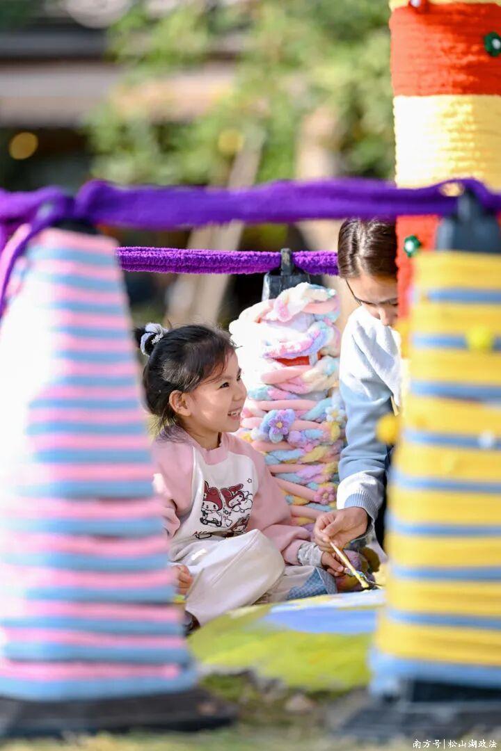 同日举办的毛线编织公共艺术活动,鼓励游客参与共创,吸引了众多松山湖居民及园区工作者参与。